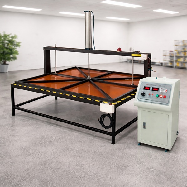 耐壓工作臺采用氣動控制系統,單側起落,單側固定轉軸,通過上臺面的自動開合實現試品的壓合動作和供電測試;或采用氣壓或液壓頂起機構(非自動),通過人工輔助動作實現上臺面的開合(該方式下操作人員通過頂起機構的省力結構可以方便地操作,其結構相當于汽車后尾箱的頂起機構);
