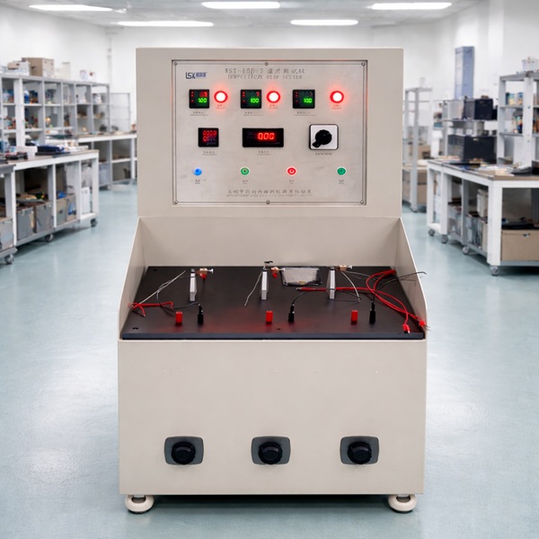 測試原理 | 利用電壓電流模擬工件正常使用,一定時間后測量溫升 |