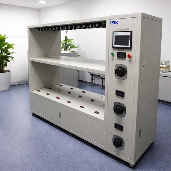 燈具老化測試架符合GB7000.1-2015美國能源之星標準要求,設備具有斷路檢測、短路檢測等故代檢測功能,并記錄保存故障原因、發生故障時間及已完成的試驗次數,同時依據不同的故障產生不同的聲光報警。燈具老練測試架